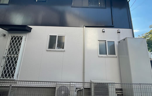 外壁に合わせて、外カバーも黒とアイボリーの2色で統一。自然勾配にて排水のため横引きは斜めに施工。お客様からはここまで綺麗に色を合わせてくれるとは思わなかったと嬉しいお言葉をいただきました。